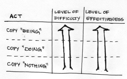 તેઓ જે કંઇ કરતાં હોય તે તેમનાં વ્યક્તિત્વનાં સમગ્રપણાંના પરિપાકરૂપે અસરકારક નીવડતું હોઇ શકે. એટલે તેઓ જે કંઈ છે, તેમ થયા સિવાય, માત્ર તેમના જેમ કરવાથી તેઓ જે કંઇ સિદ્ધ કરી શકે છે તે જ સિદ્ધ કરવું કદાચ શકય નથી.